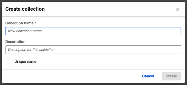 - Create collection - Create a new collection or a new nested collection (when used inside an existing collection).