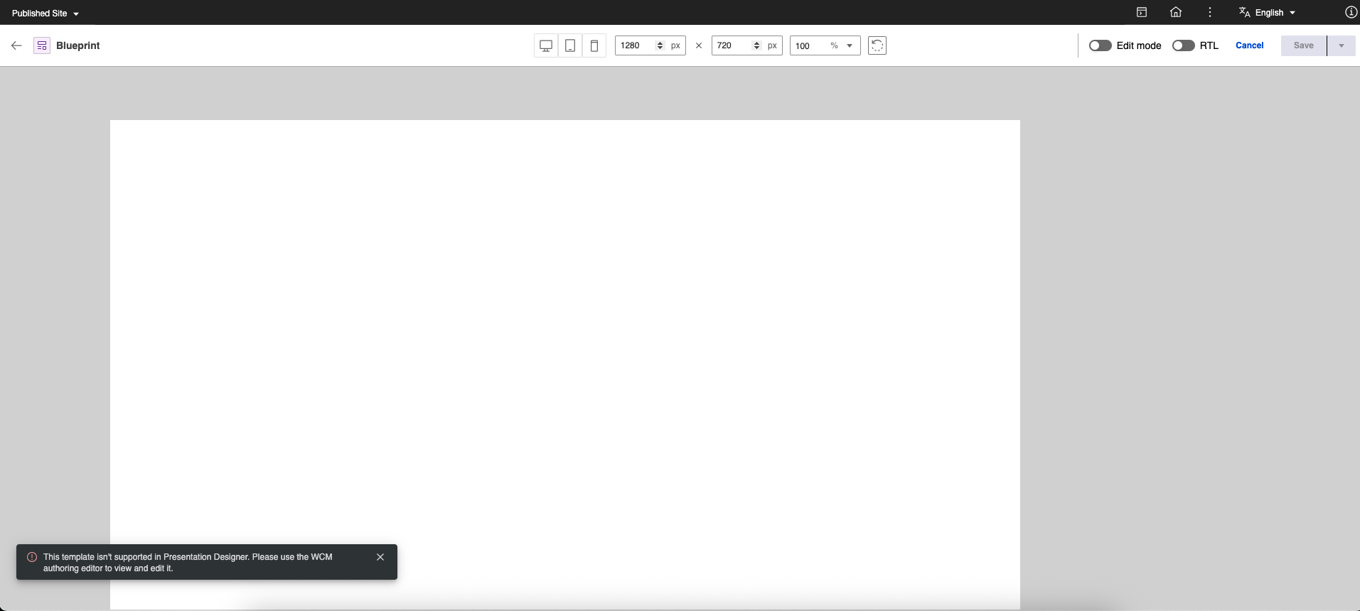 Blueprint Presentation Templates are not yet supported: