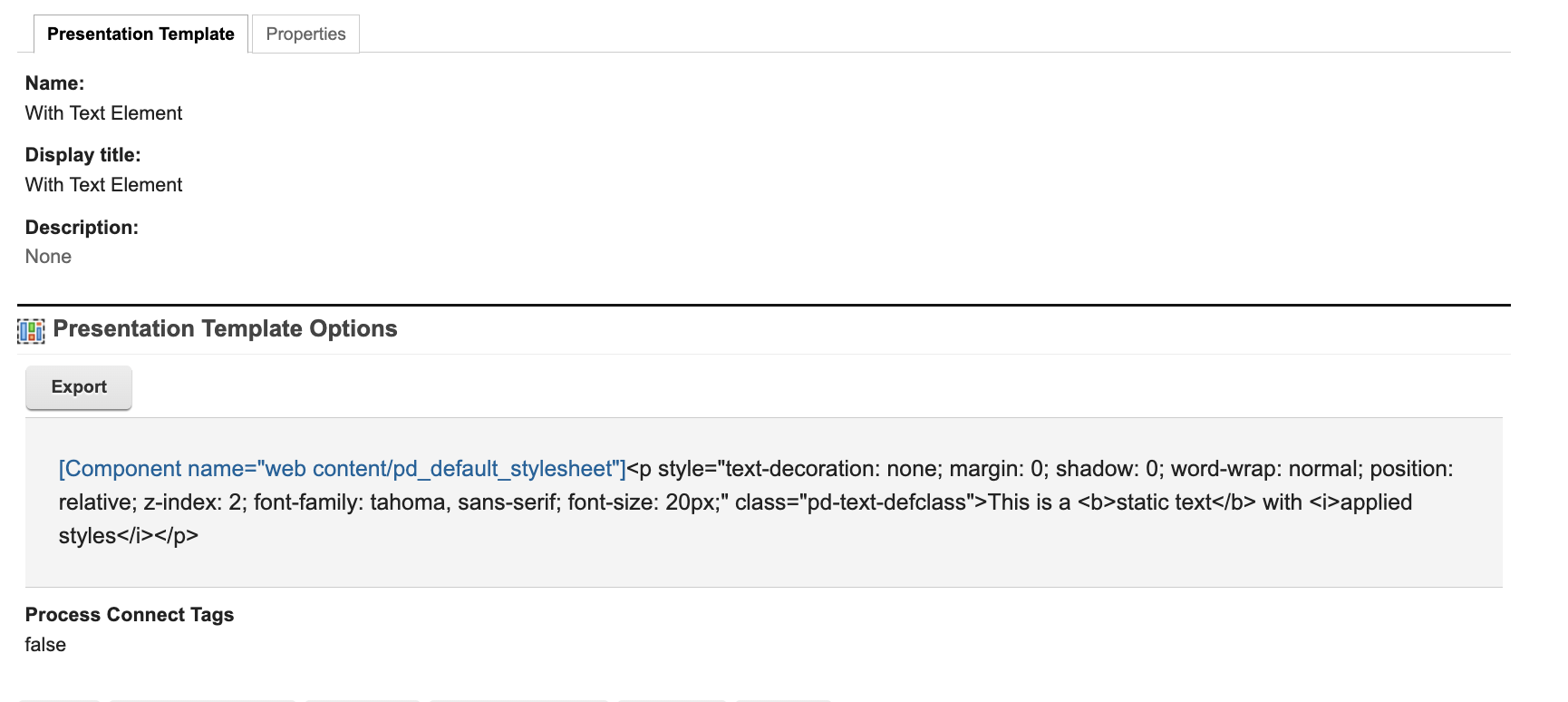 In Presentation Designer, styling options are applied directly to the selected elements through inline styles.