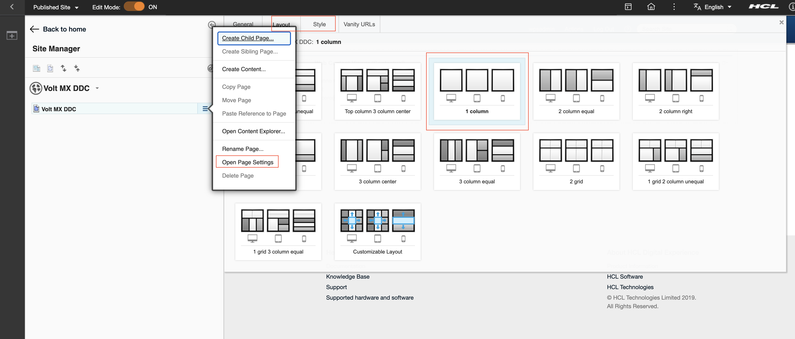 Administration>Site Management>Manage Pages, create a new page underContent Root(e.g.Volt MX DDCpage). -
