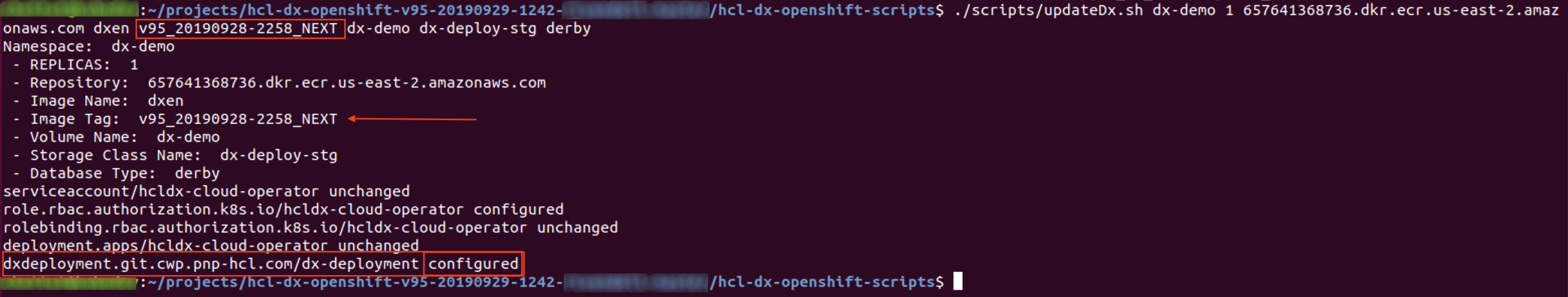 - Pour mettre à jour le déploiement, exécutez le script updateDx.sh avec les valeurs mises à jour.