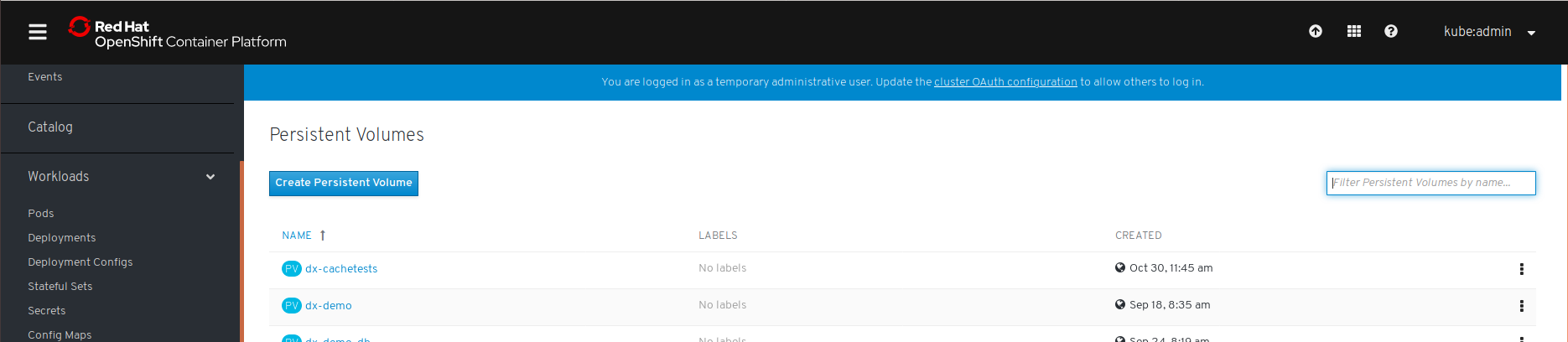 ./scripts/deployDx.sh NAMESPACE REPLICAS REPOSITORY IMAGENAME IMAGETAG VOLUMENAME STORAGECLASS DBTYPE- ESPACE DE NOMS : le projet ou l'espace de noms à créer ou à utiliser pour le déploiement.
