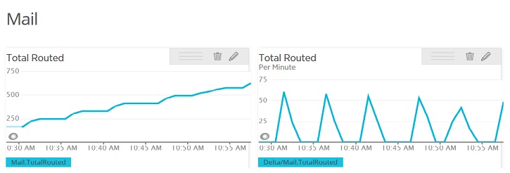 Domino の「カウンタ」統計には通常、2 つのチャートがあります。徐々に増えていく値を示すチャートと、連続した値と値の差分 (差の比率) を示すチャートです。