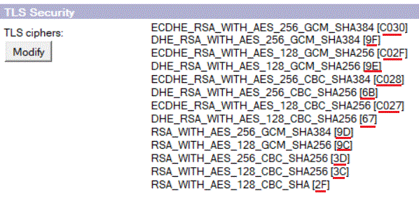 As a convenience to administrators, HEX codes are shown next to the symbolic names for the TLS ciphers that can be selected in various fields in the Domino directory.