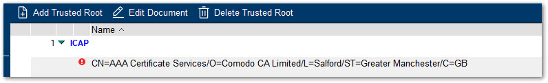 [ICAP] カテゴリを展開します。上記のステップによって追加された新しい信頼されたルートは、そのカテゴリの下に保留状態で追加されました。