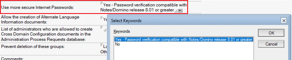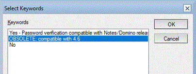 630 ビットおよび 512 ビットの公開鍵オプションは、Notes ID に適用できなくなります。「4.6 以上」のパスワード検証オプションは、インターネットパスワードの強度に適用できなくなりました。
