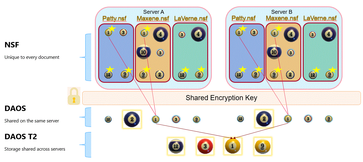 从 HCL Domino 12® 开始,您可以创建供启用 DAOS 的多个服务器用于加密对象的共享密钥。