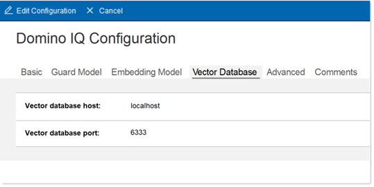 - Optionally, change the port for the Vector database server. Also optionally change the host if running multiple partitions.