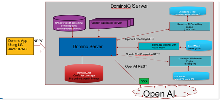 - A llama-server instance with an LLM inference model if Domino IQ server is enabled for local mode