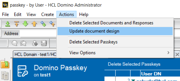 If there are any existing passkey.nsf files using the 14.0 format, you must update their design. Additionally, any user entries that were previously created in the passkey database need to be updated with the new passkey form. To accomplish this, from the passkey database click .