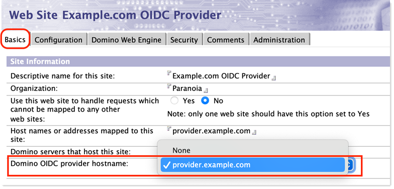 that will host the Domino OIDC provider. This will also pre-populate the Primary