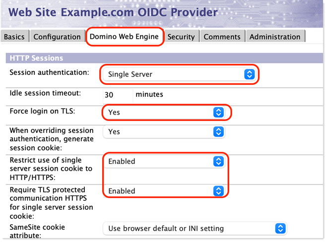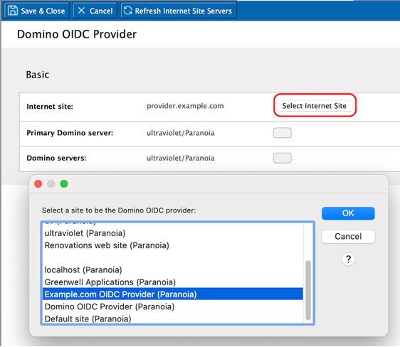 - Open the Internet Site document for the site hosting the Domino OIDC provider.