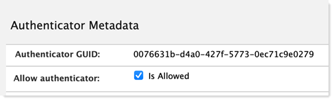 Metadata acquired from the FIDO Metadata Service can be viewed via the Metadata view in the passkey.nsf database. Administrators can select one or more authenticators from the view level and use the Enable Selected and Disable Selected buttons to allow or deny creation of passkeys with the selected authenticators. By default, all authenticators are allowed.