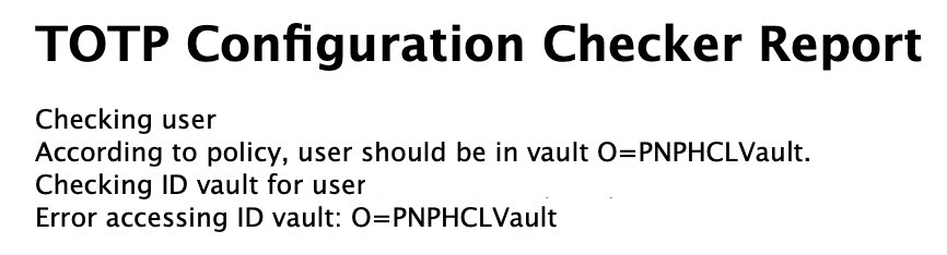 The configuration checker then reviews the settings in server documents and server configuration documents to ensure that the proper configurations are in place for TOTP use. A report is generated, indicating success or failure (and cause), such as the following: