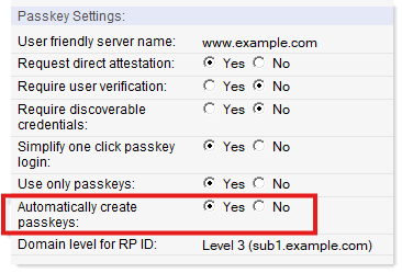 This setting will ask the user's default password manager to opportunistically create a passkey for the end user immediately after authenticating that user to the site using a user name and password that was saved in that password manager. The user will receive a non-disruptive notification in their client if the upgrade succeeded and will see nothing if it failed. This functionality is still relatively new and is not supported by all web browsers, password managers, and operating systems, but where supported it can significantly simplify the process of upgrading end users from passwords to phishing-resistant, innately multifactor, easy- to-use passkeys.