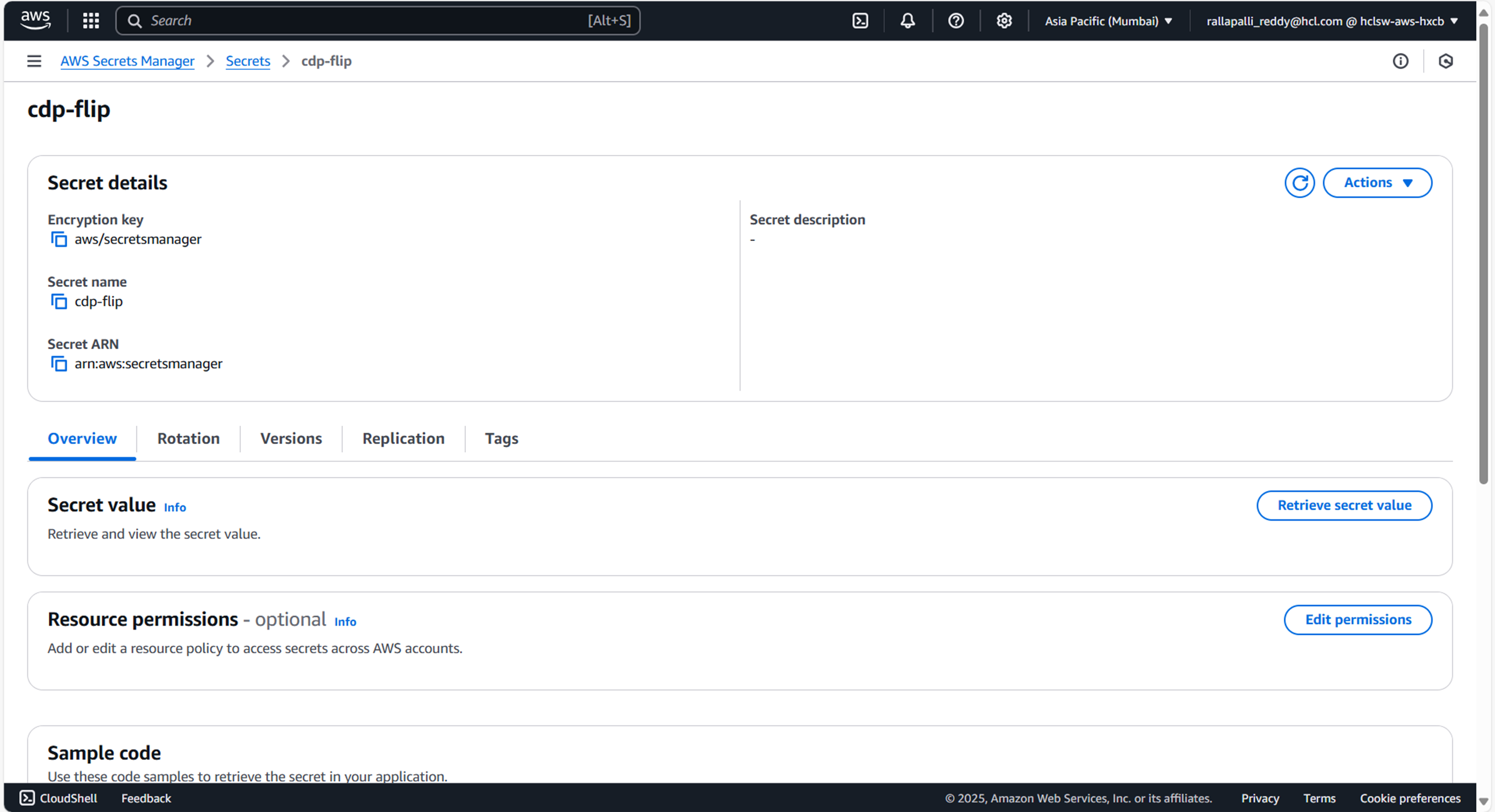 To create CDP Flip secret in the AWS secret Manager, follow the steps below: