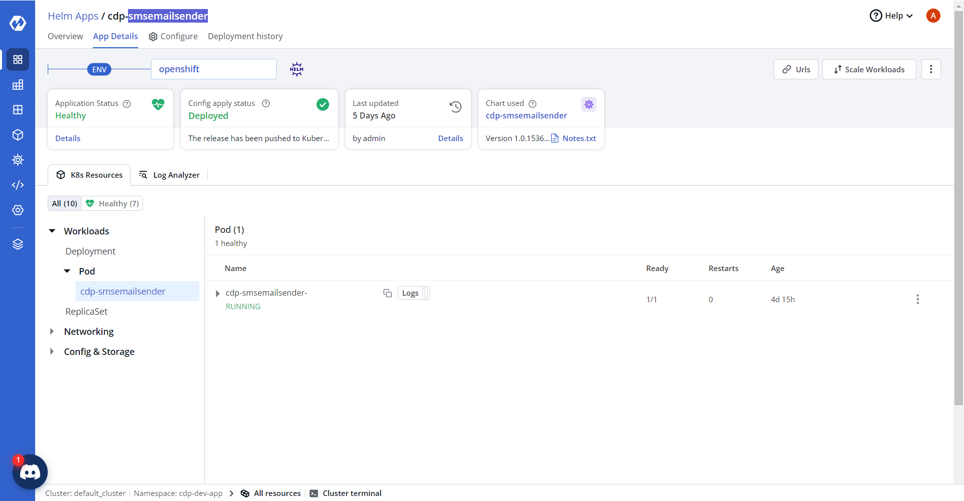- Now, configure and deploy the cdp-smsemailsender charts.