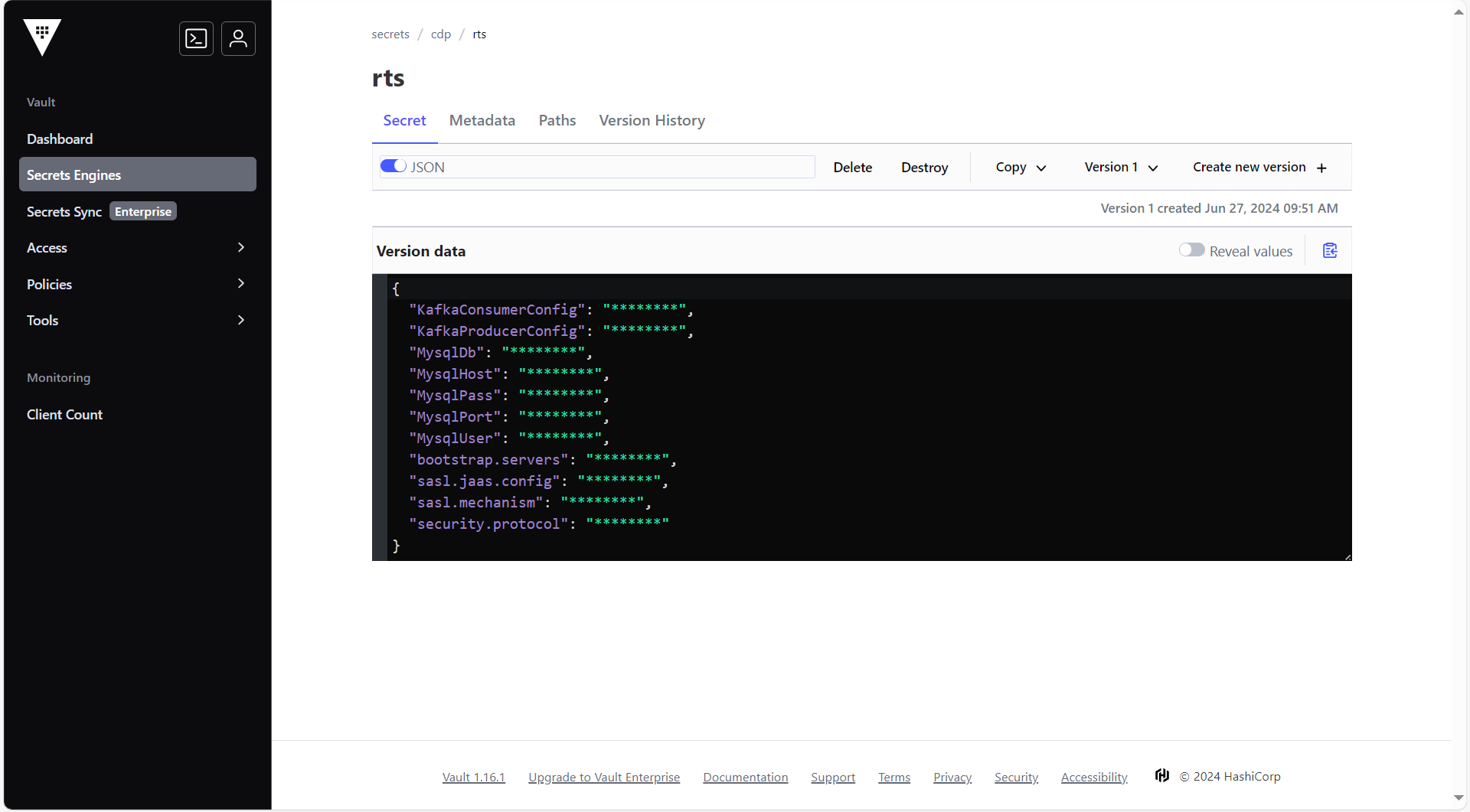 To create a rts secret in the HashiCorp Vault, follow the steps below: