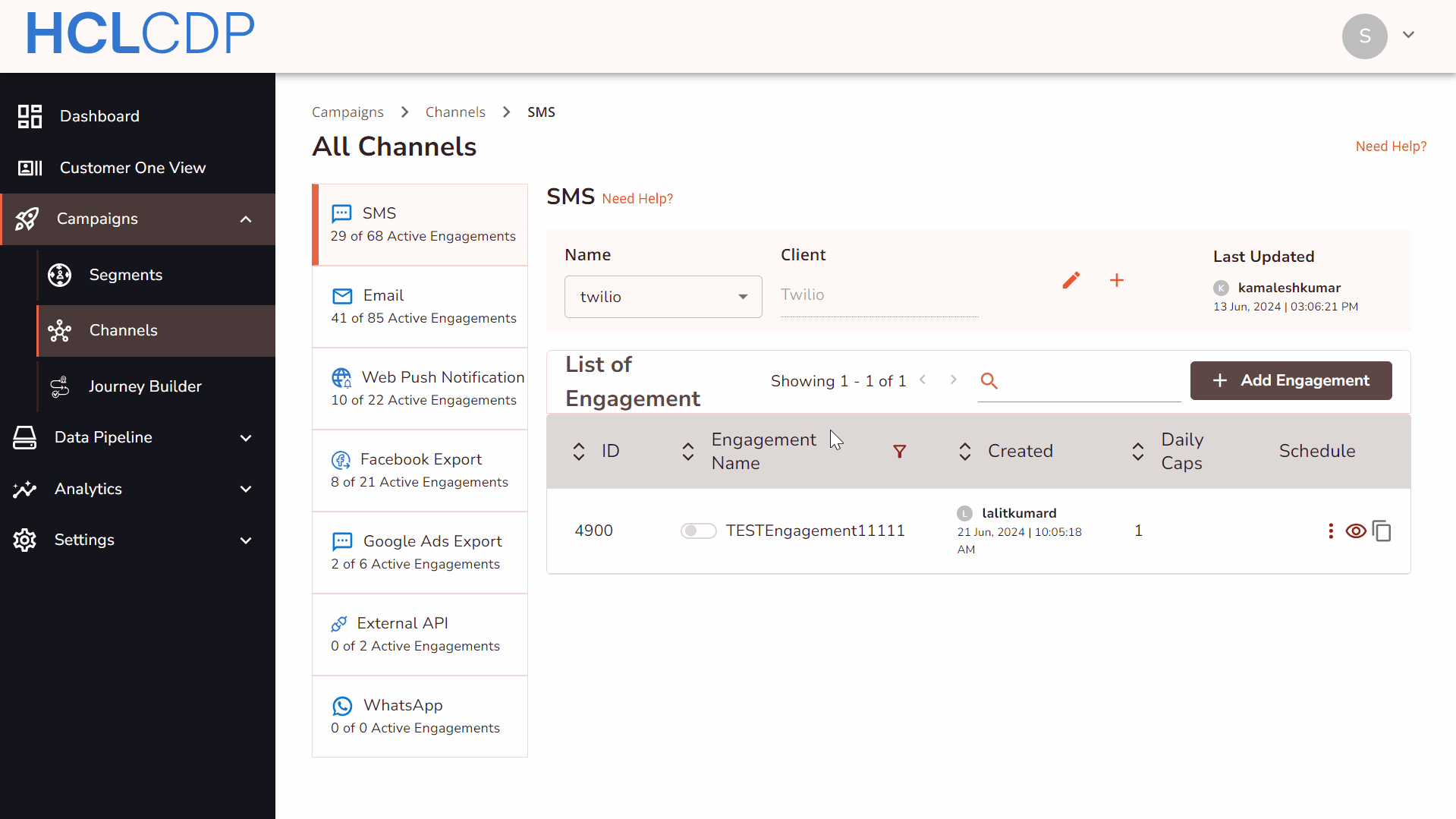 HCL CDP allows you to create and manage SMS campaigns, while an SMS Service Provider (SSP) like Twilio, Infobip, or Netcore delivers the messages to your target audience.