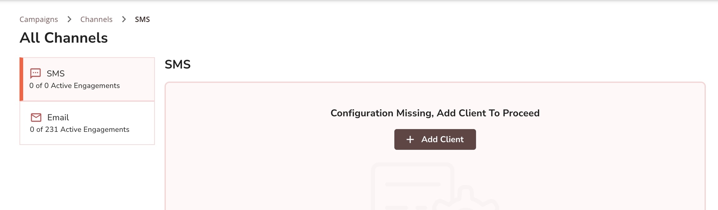 - In the Add Client page, add a name to define the configuration. Note: This is an internal configuration name and will not be sent while sending SMS campaigns.