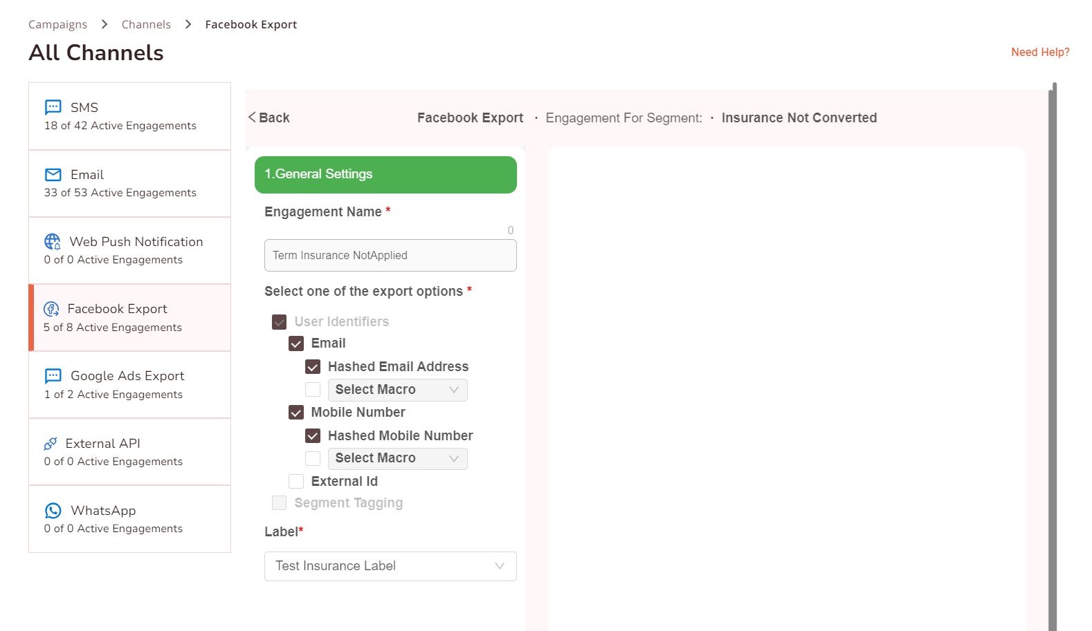 The Facebook Export Channel enables clients to create segments on the HCL CDP UI and export them in real-time to their respective business managers.