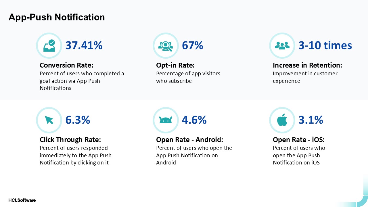 Personalized App Push campaigns are one of the most effective ways to drive conversions, and it is backed by proven statistics. Using the HCL CDP Marketing Automation platform, you can create App Push notifications for Android and iOS devices. Ensure you have an active segment to enable App Push Notification engagement. For more information about creating segment, refer here.