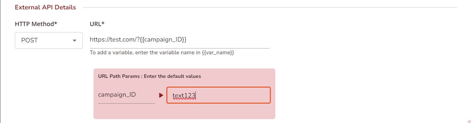 Tip: This URL is custom-made for demonstration purposes{{Campaign_ID}} is the URL path parameter we declared above and added a default value.