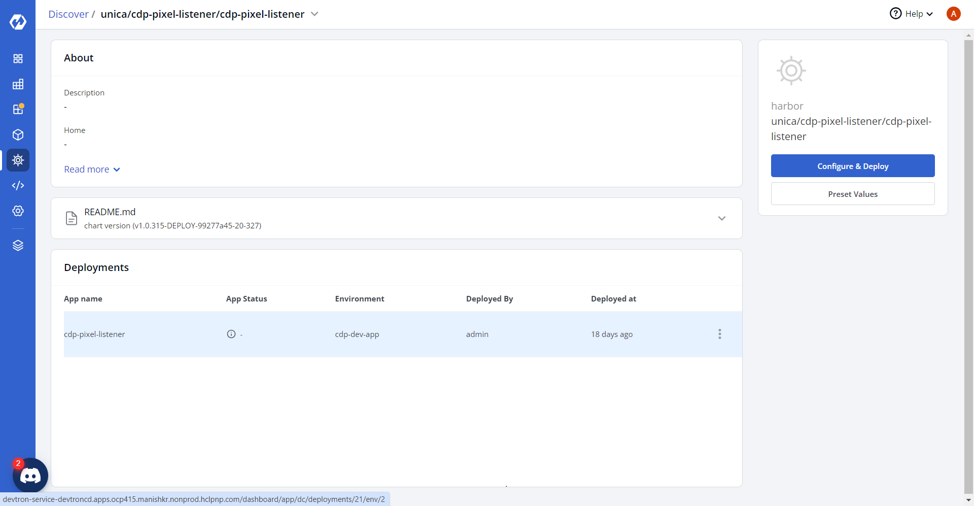 This section provides detailed instructions on how to deploy HCL CDP DI API using the Devtron in the OpenShift.