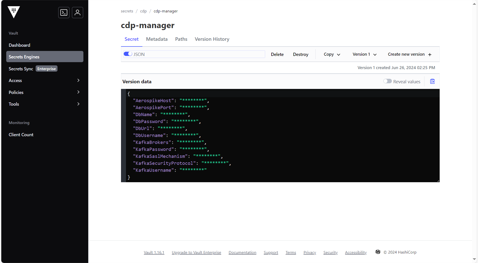 To create the UI secret in HashiCorp Vault, follow the steps below: