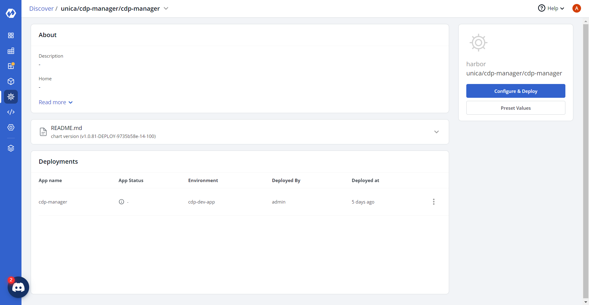 - Navigate to the Devtron Chart Store, and select the cdp-manager chart to