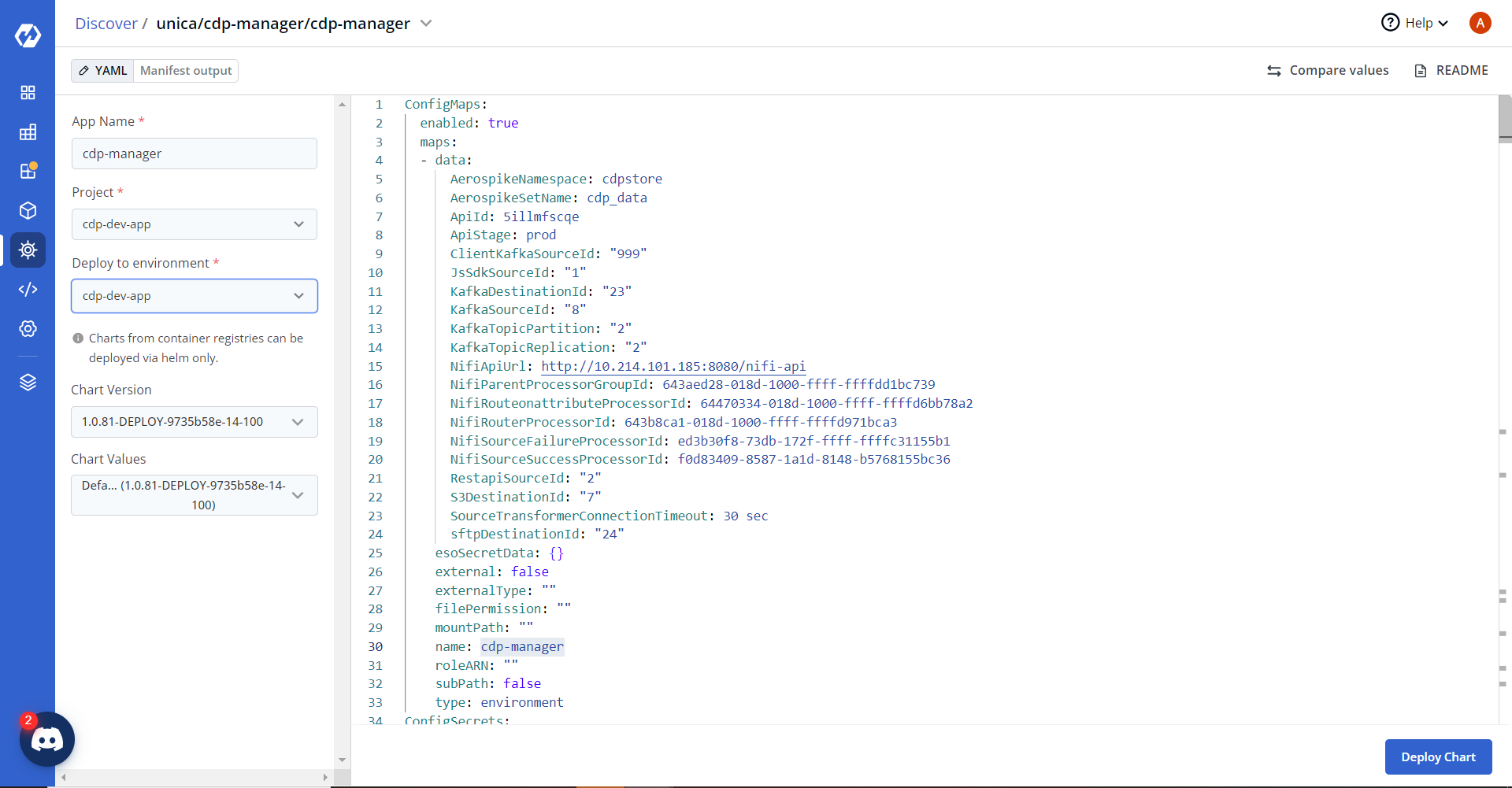 - Now, configure and deploy the CDP Manager charts.