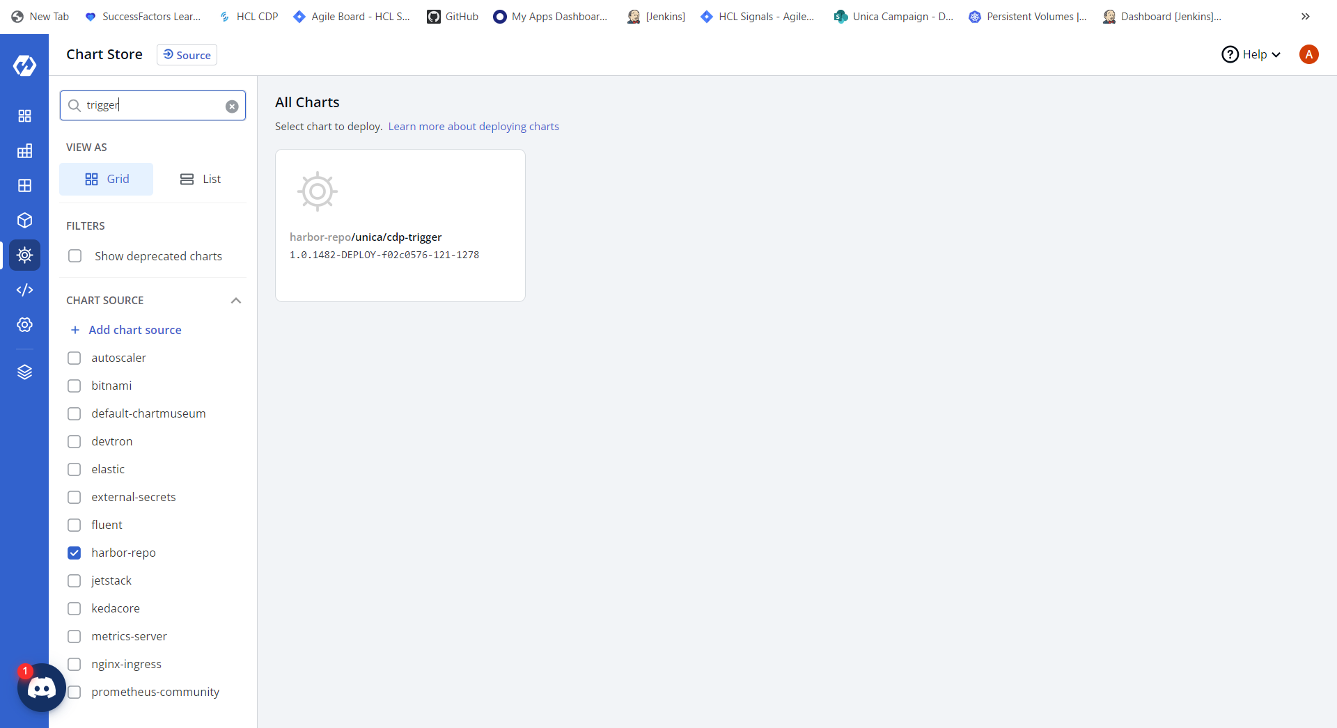 - Navigate to the Devtron Chart Store, and select cdp-trigger chart to deploy.