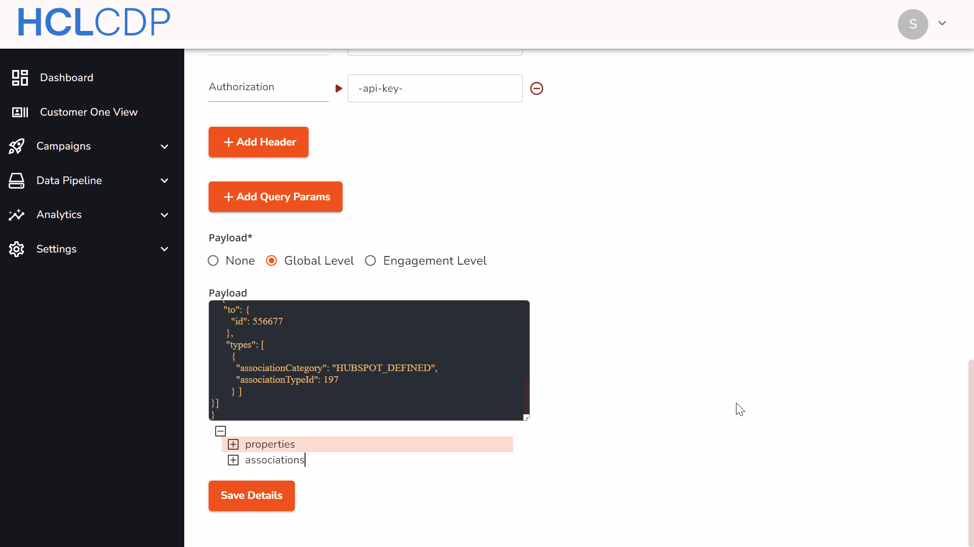 - Configure HCL CDP's External API to integrate with HubSpot's Create Contact API.