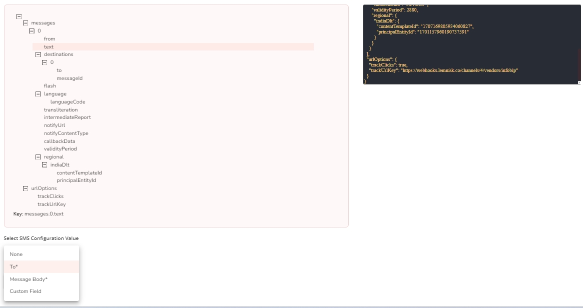 - Now, select the SMS Configuration fields and map the mandatory values To*