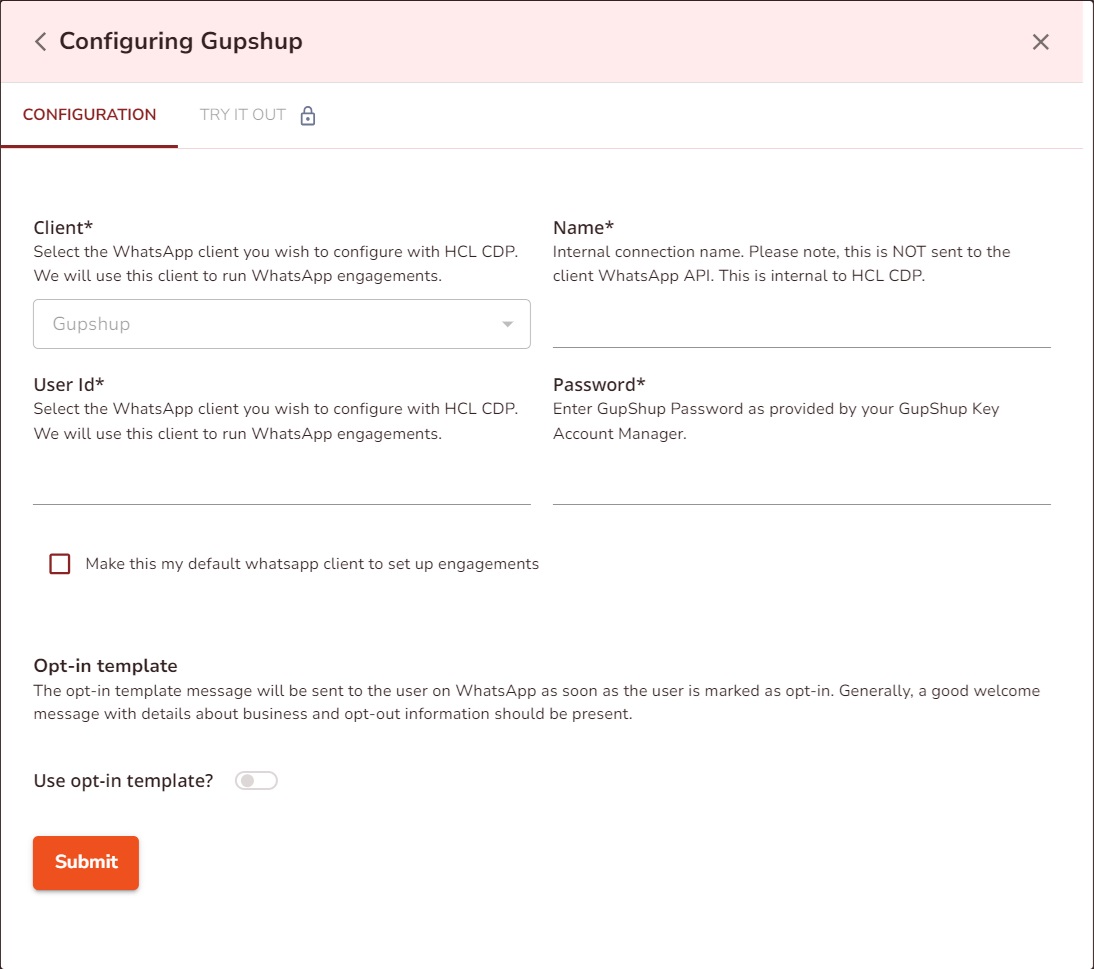Configure Gupshup Messenger with HCL CDP