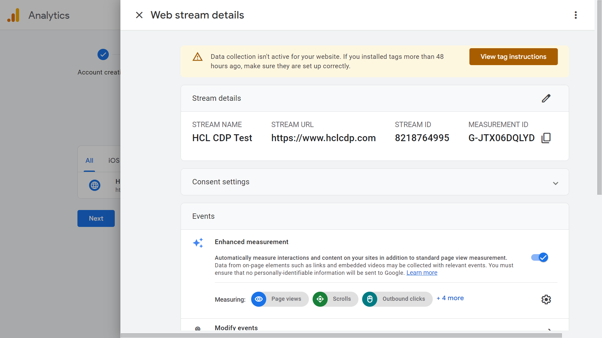 2. Share your Measurement ID and API Secret from the GA4 property with the HCL CDP customer success or delivery team.