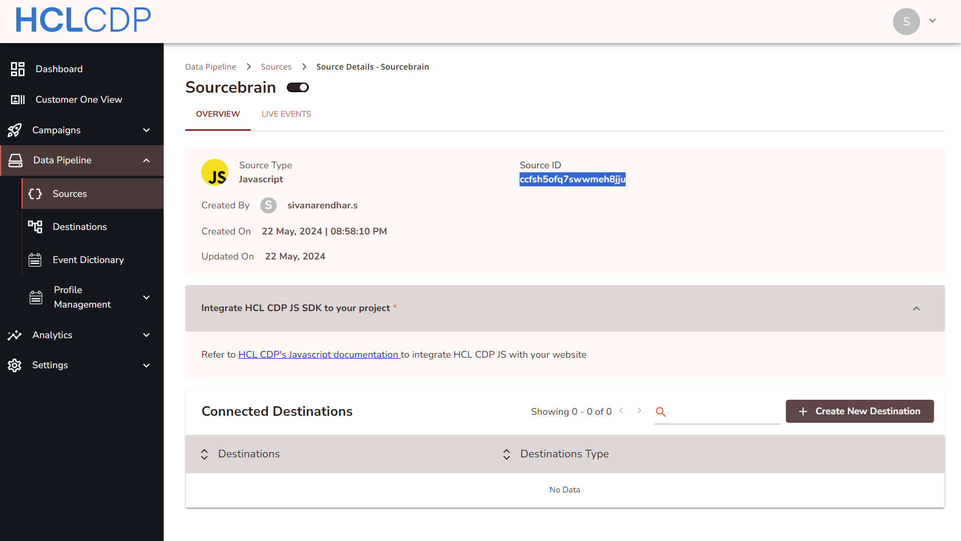 Navigate to Data Pipeline > Sources in the sidebar. Select a source,