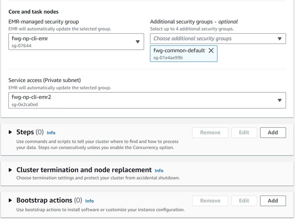 - Remove Task Instance Group, and update the EBS Volume size field to 100 GB.