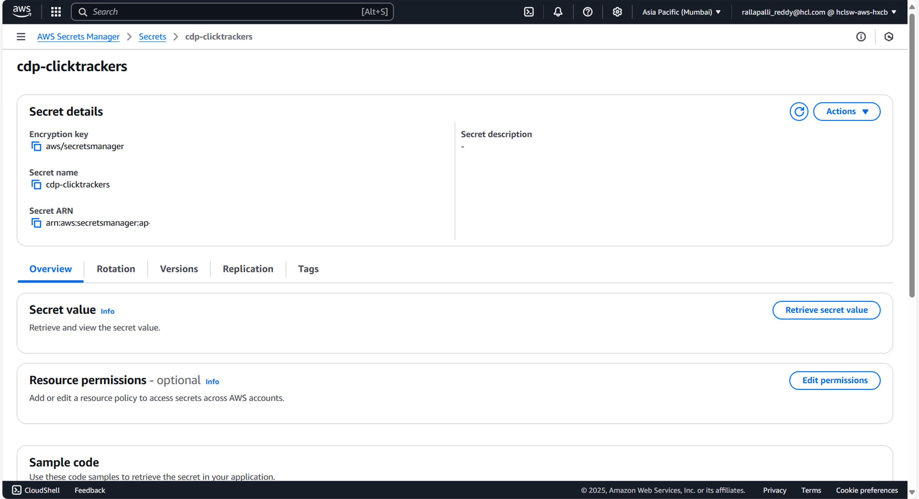 To create a CDP Clicktrackers secret in the AWS secret manager , follow the steps below: