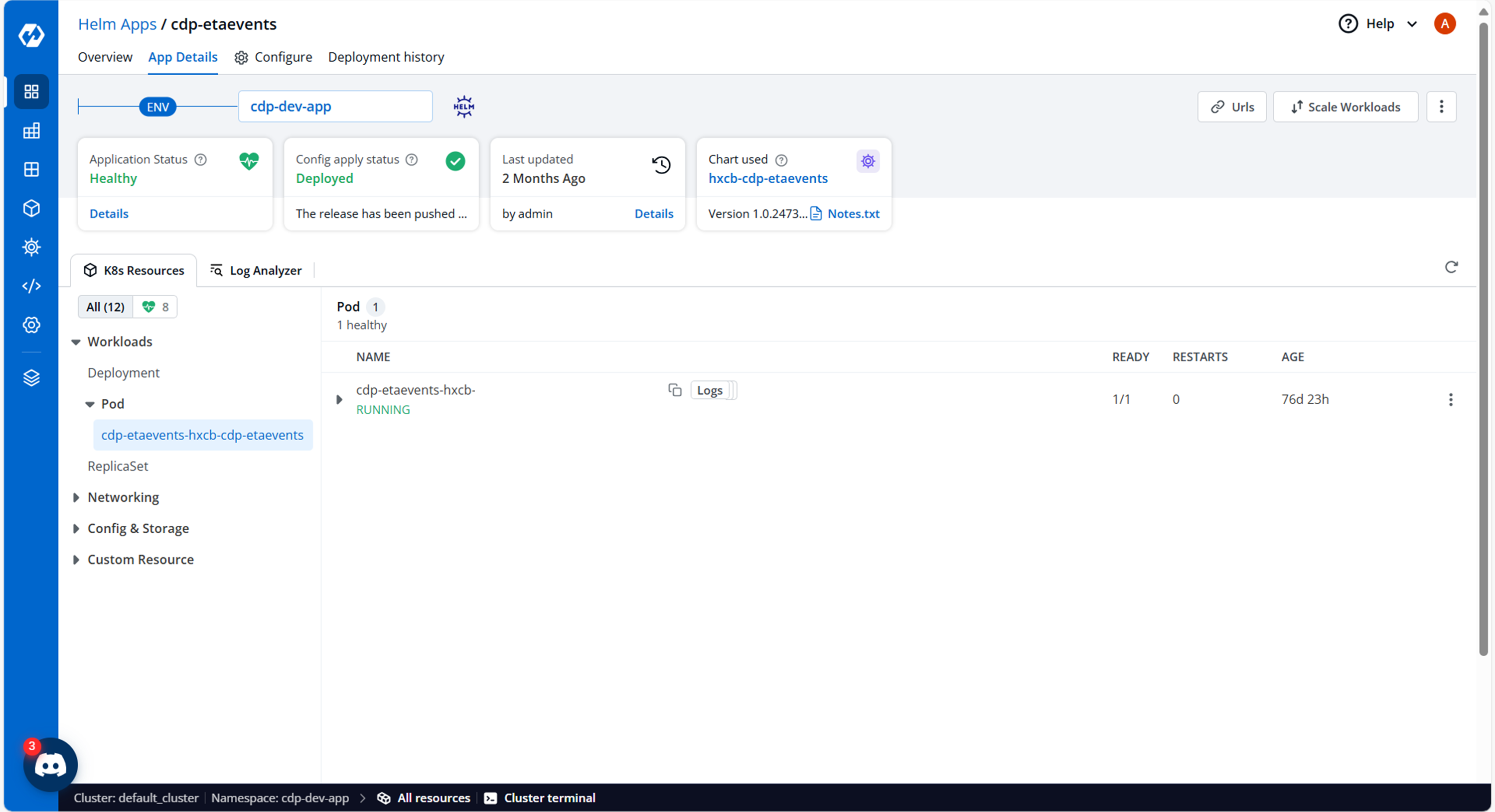 - Now, configure and deploy the cdp-etaevents charts.