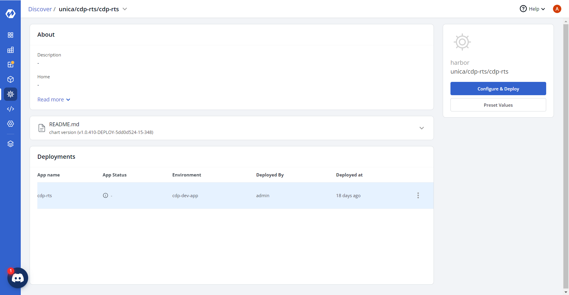 - Navigate to the Devtron Chart Store, and select the cdp-rts chart to
