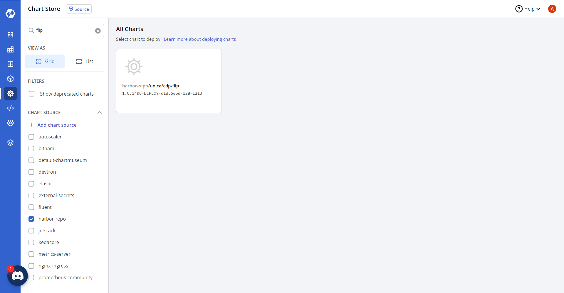 - Navigate to the Devtron Chart Store, and select the cdp-flip chart to