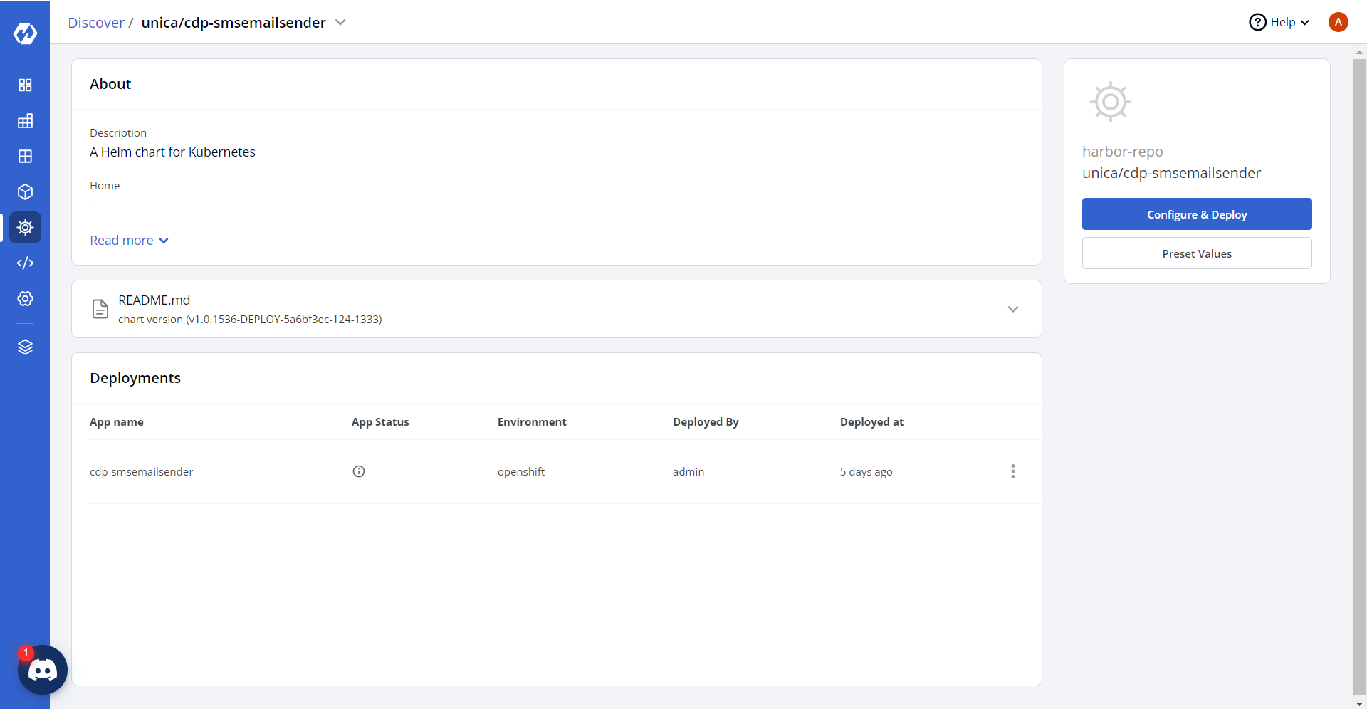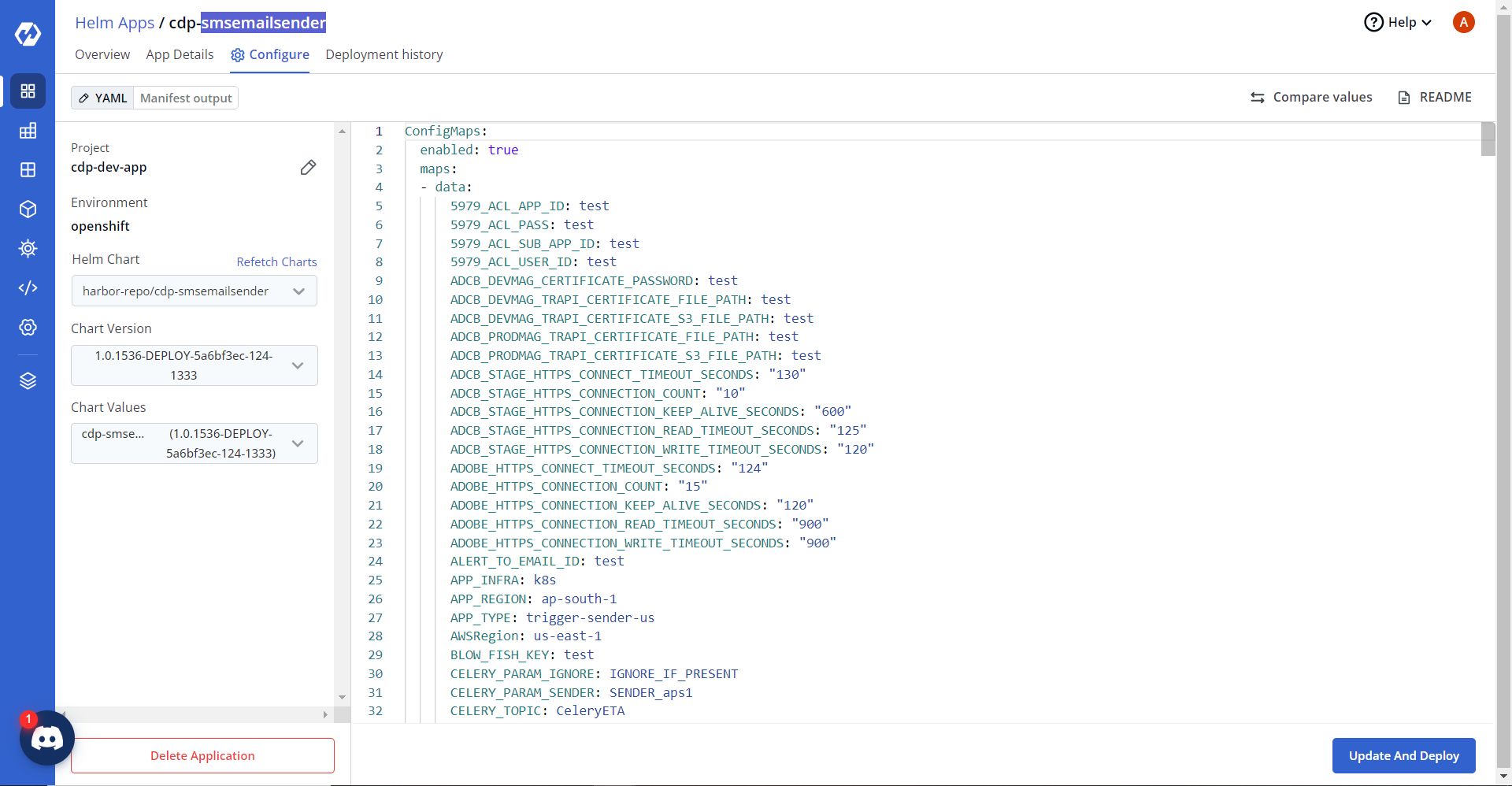 This section provides detailed instructions on how to deploy HCL CDP SMS Email Sender using the Devtron in the OpenShift.