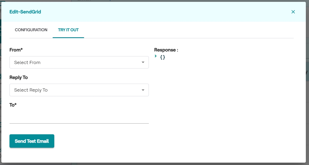 - Click Send Test Email to see the response of the API on the right-hand side, and on successful, you will receive an email.