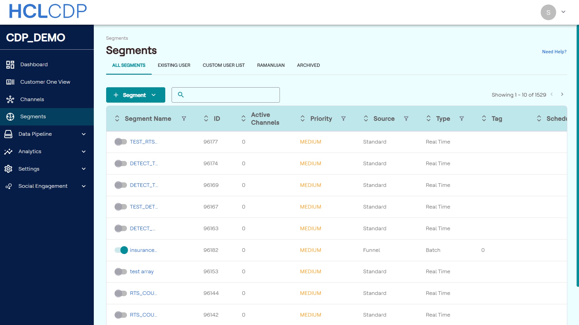 - Create Segment: Name your segment, set priority, define its type,