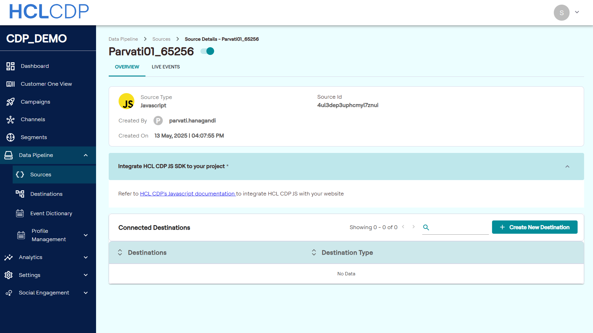 The HCL CDP JavaScript SDK is designed to capture user events on your website and transmit them to various destinations of your choice. Configuration of these destinations is managed via the CDP Dashboard. To ensure proper implementation, use this documentation in conjunction with an Event Tracking Plan provided by your HCL CDP Customer Success Contact.