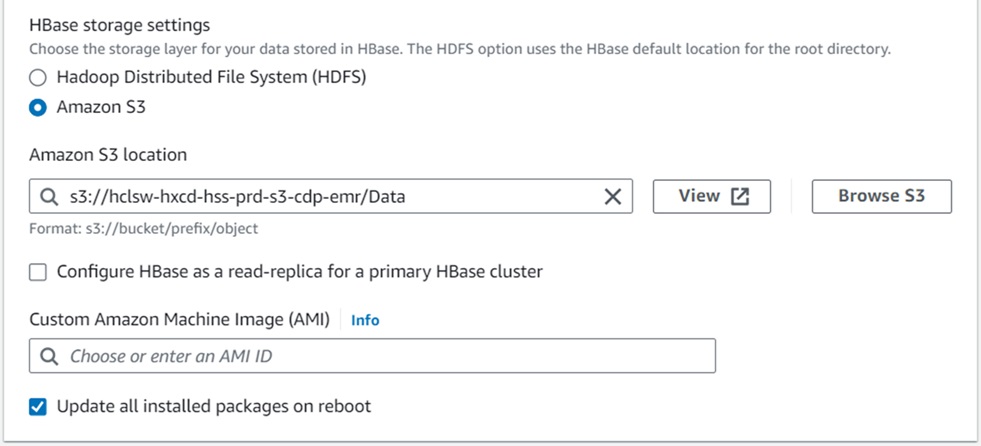 - In the Cluster logs section, add s3 path for logs as S3://hclsw-hxcd-hss-prd-s3-cdp-emr/Logs.