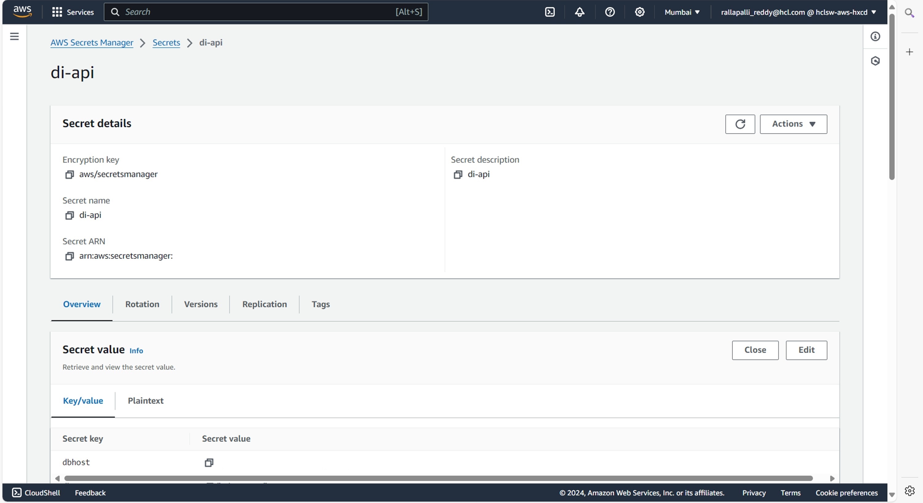To create the di-api secret in the AWS secret manager, follow the steps below: