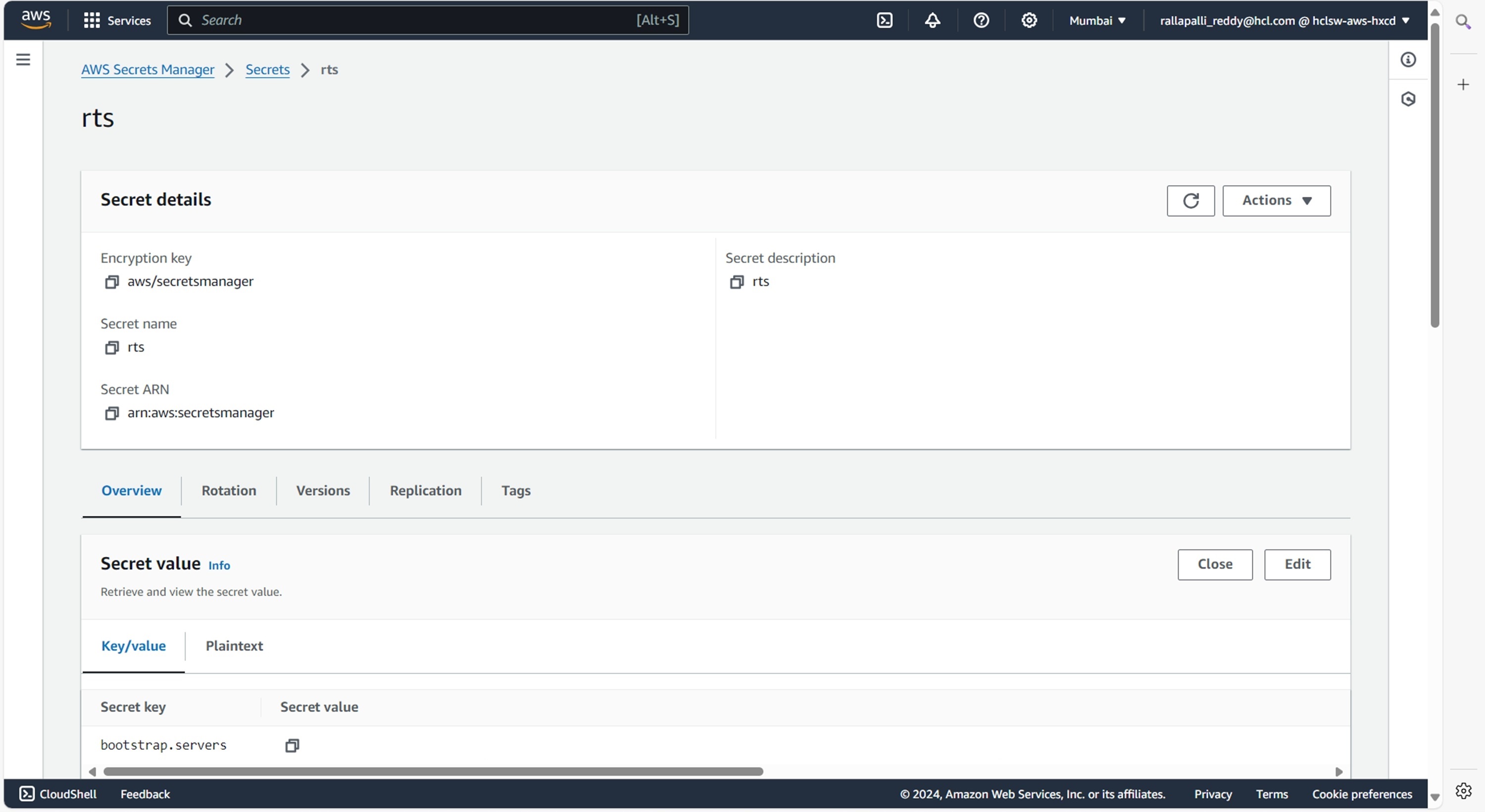 To create the rts secret in the AWS secret manager, follow the steps below: