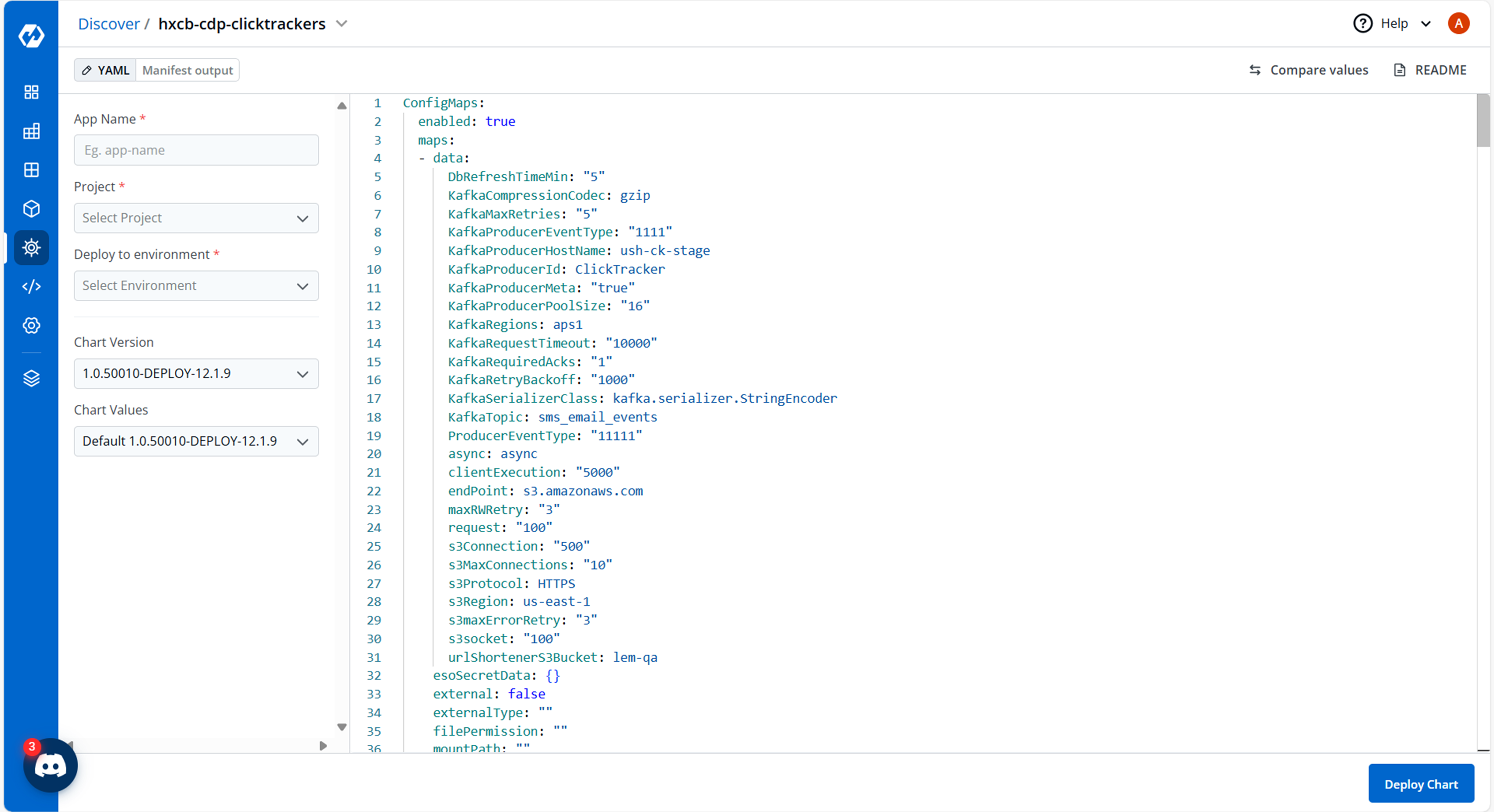 - Now, configure and deploy the cdp-clicktrackers charts.